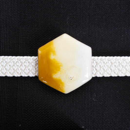 帯留としてだけでなく、ヘアゴムにしたり、Uピンとかで固定してみたり、すごく細いベルトと合わせてみたり、色んな使い方が出来そう。