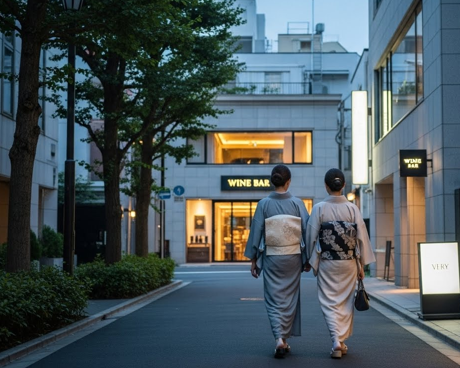 【気の置けない友人と久しぶりに会う、行きつけのワインバー】